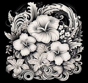 #FloralDesign #AlohaSpirit #BlackWhite #LineWork #HistoricalIllustration #DetailedWildlife #FlowingLines #InterlacingArtifacts #Tumblewave #Serpentinata16:15