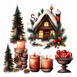 Christmas clipart images in the style of Chiaroscuro Art, on a white background