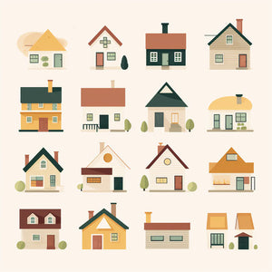 Minimalist style house clipart images on a white background