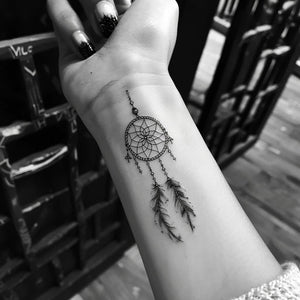 #tattoo #dreamcatcher #feathers #beads #women #femaletattoo #wrist #delicate tattoo #tattoosketch #coveruptattoo