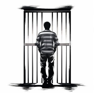 Jail depiction in the Chiaroscuro Art style, on white background