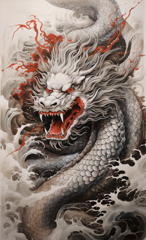#japanesepainting #redandwhitedragon #organicmaterial #khmerart #handcraftdesigns #massurrealism #tattoo #aggressivequilting #paintedontextile #lightgrayblackstyle