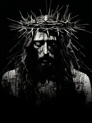 #InkPortrait #Jesus #CrownOfThorns #Cross #PointillistCompositions #EmotionalDistortion #StencilBased #AssociatedPressPhoto #RTXon #DarkHumorGraphicPrints
