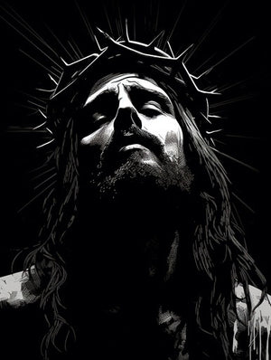 #InkPortrait #Jesus #CrownOfThorns #Cross #PointillistCompositions #EmotionalDistortion #StencilBased #AssociatedPressPhoto #RTXon #DarkHumorGraphicPrints