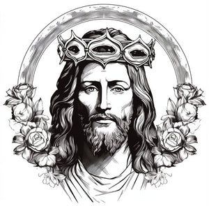 #Jesus #crown #roses #headband #stockillustration #crosshatchingstyle #rounded #decorative #graphical #128:127
