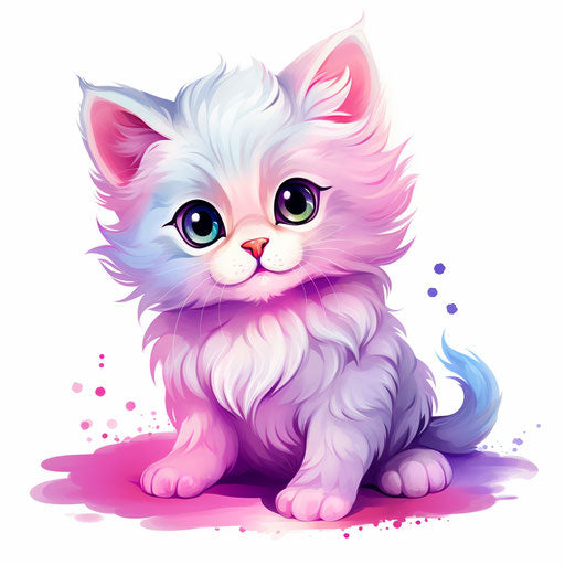 Kitten artwork in Pastel Colors Art style, on white backdrop