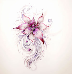 Flower tattoo design, light silver and magenta style, glittery and shiny, lyrical line-work, contrasting, subtle 27:28