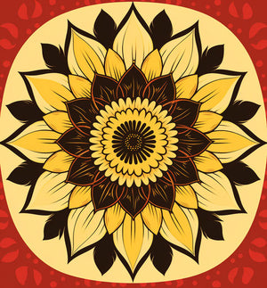 Sunflower mandala in Balinese style, traditional motifs, dark yellow and dark brown