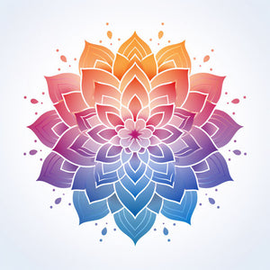 #blue purple lotus flower #vector illustration #indian motifs #circular shapes #white background #subtle gradients #light orange #red #light pink #yellow #decorative borders