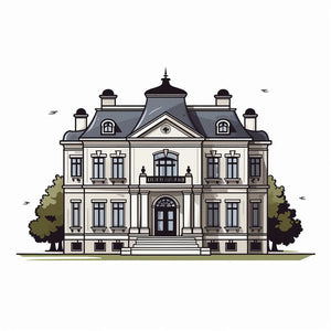 Minimalist style mansion clipart, on white background
