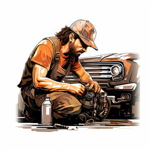Mechanic illustration in the style of Chiaroscuro Art, on white background