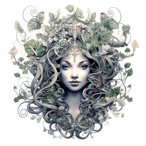 #indianwoman #asianwoman #vyrushead #drawingart #mythologyinspired #floral #charmingcharacters #monochromepalette #nouveaurealisme #artprint
