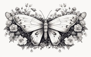 #moth of death tattoo #black and white #design #floral style #nature-based patterns #vintage-influenced still lifes #himalayan art #insects #commission for #contrasting