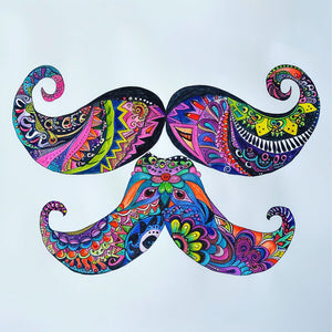 Stylized tattoo sketch of a mustache with pop art influences and vibrant patterns