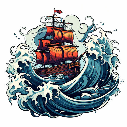 Nautical clipart in the style of Chiaroscuro Art, on white background