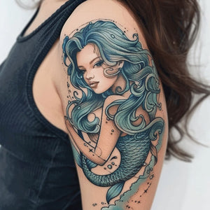 #tattoo #mermaid #neotraditional #bluegreen #flowinghair #whitebackground #captivating #bodyart #artwork #ocean
