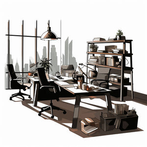 Office clipart in the style of Chiaroscuro Art, on white background