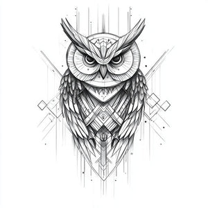#tattoo #owl #flatstyle #geometric #lines #patterns #clipart #chest #white #sketch