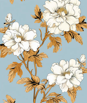 #flowers #royalty #japanese #art #tattoo #pastelpalette #bronze #blue #leaves #vector