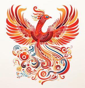 #red phoenix #fast flying #intricate cut-outs #Shang Dynasty #Bloomsbury Group #vividly bold designs #carnivalcore #bold colors #precisionist #marks 37:38