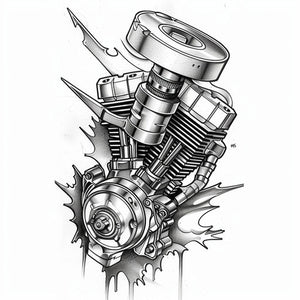 #tattoo #engine #piston #dramatic #detailed #sketch #mechanical #bold #background #flat