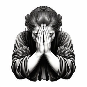 #naive drawing #black and white praying hands sticker #artistic collaboration #RTX on #commission style for #floral craft #Lucy Glendinning #Tyler Walpole #Monsù Desiderio #flowerpunk