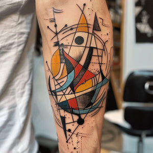 Modern flat tattoo of boat with cubist elements