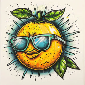 Vibrant flat tattoo sketch of a lemon wearing sunglasses