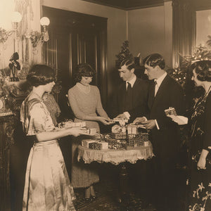 1920s Christmas celebration in sepia
