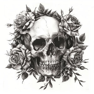 #skull #roses #beauty #decay #tattoo #flower #art #contrast #white #design