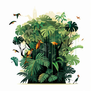 Rainforest clipart in the style of Chiaroscuro Art, on a white background