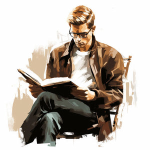 Reading illustration in the style of Chiaroscuro Art, on white background