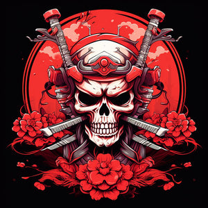 #GraphicSkull #JapaneseSamurai #Swords #Illustration #SamuraiStyle #RedandWhite #Japan #Artist #GraphicDesign #Artwork