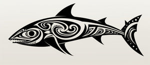 Tattoo illustration of a tribal shark, in the style of avian-themed, Papua New Guinea art