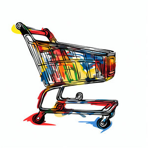 Shopping cart illustration in the style of Chiaroscuro Art