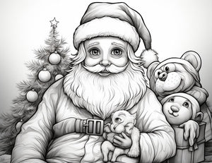 Christmas coloring pages for kids, in the style of Samyang AF 14mm f/2.8 RF, plush doll art, Rudolph Belarski, dark cyan and pink, Tim Holtz, Lucas Cranach the Younger, Konica Auto S3 31:24