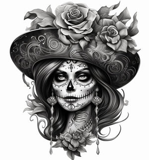 #SkullHatTattoo #BlackWhiteTattoo #MexicanMuralism #UHDImage #HighResolution #TattooDesign #ArtisticTattoo #CulturalTattoo #SkullArt #MuralStyle