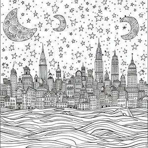 #starry sky #city skyline #coloring book #night #stars #city #relaxation #coloring page #coloring pencils #coloring