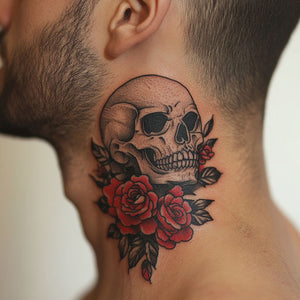 #throattattoos #men #skull #roses #gothic #geraldbrom #bodyart #style #aesthetics #tattoo