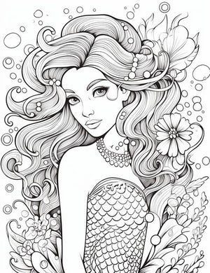 Mermaid girl coloring pages, in the style of captivating, colorful cartoon