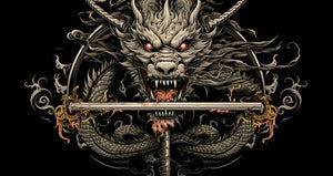 Samurai dragon on a sword, fire in its mouth
