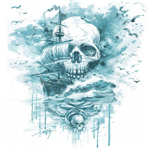 #JollyRoger #tattoo #pirate #calmseascape #peace #tranquility #blue #white #clipartstyle #sketch