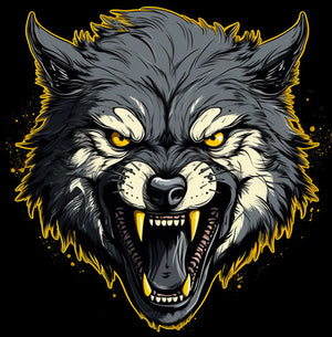 #angry wolf #head #vector #robert williams style #dark silver #yellow #dark gray